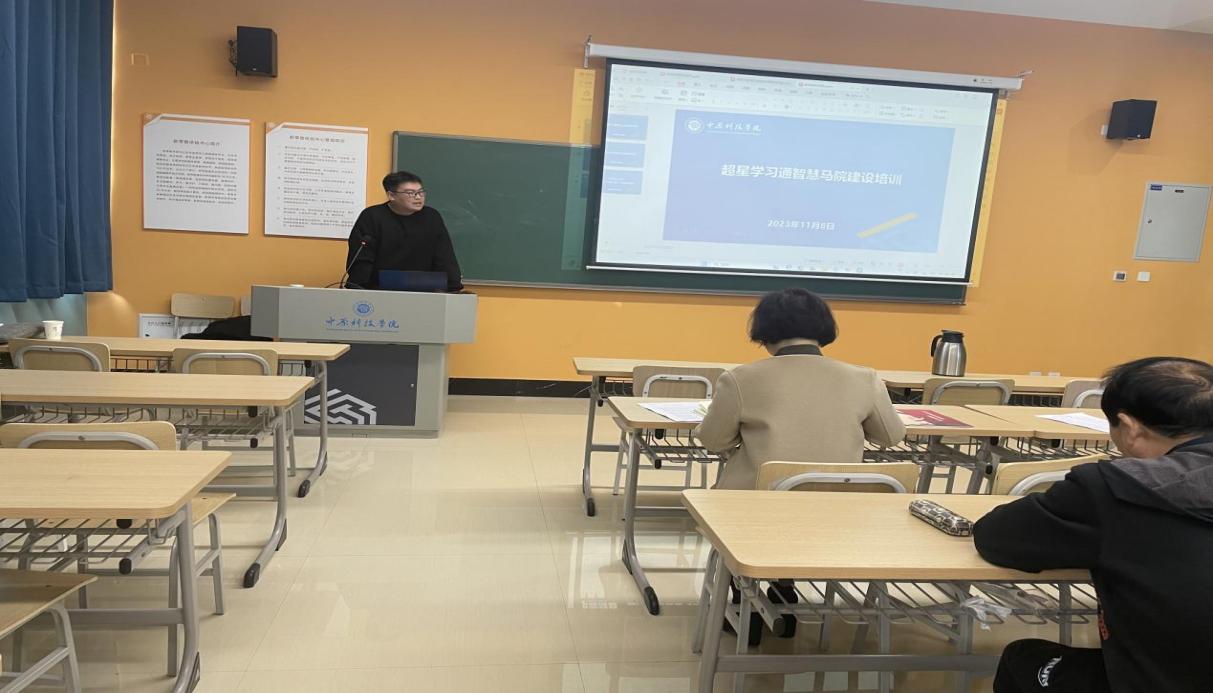 为提高全体教师熟练应用智慧教学手段和方法,实现高水平思政教学,11月8日上午,中原科技学院马克思主义学院特邀超星泛雅集团河南分公司技术专家在许昌校区立业楼N108举办“超星学习通智慧马院建设培训”,马克思主义学院全体教师到场参会。