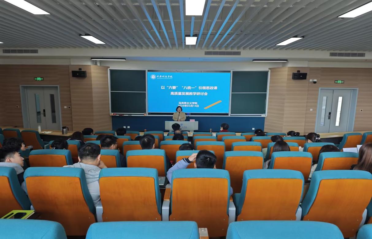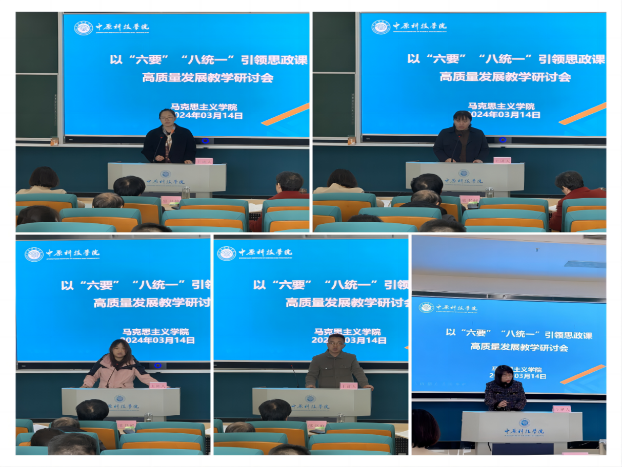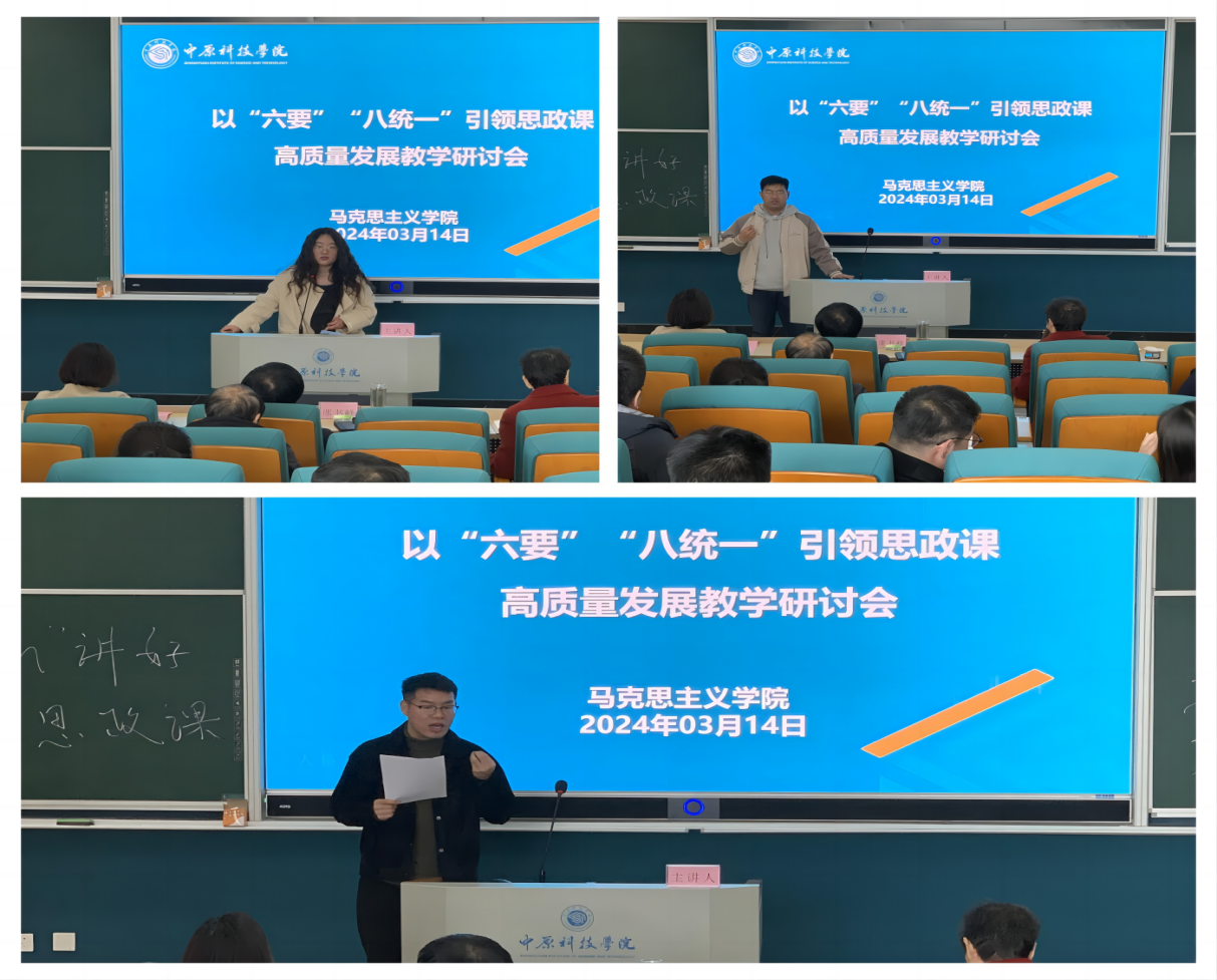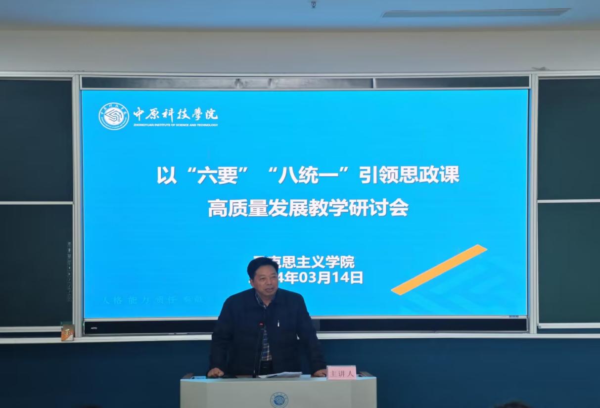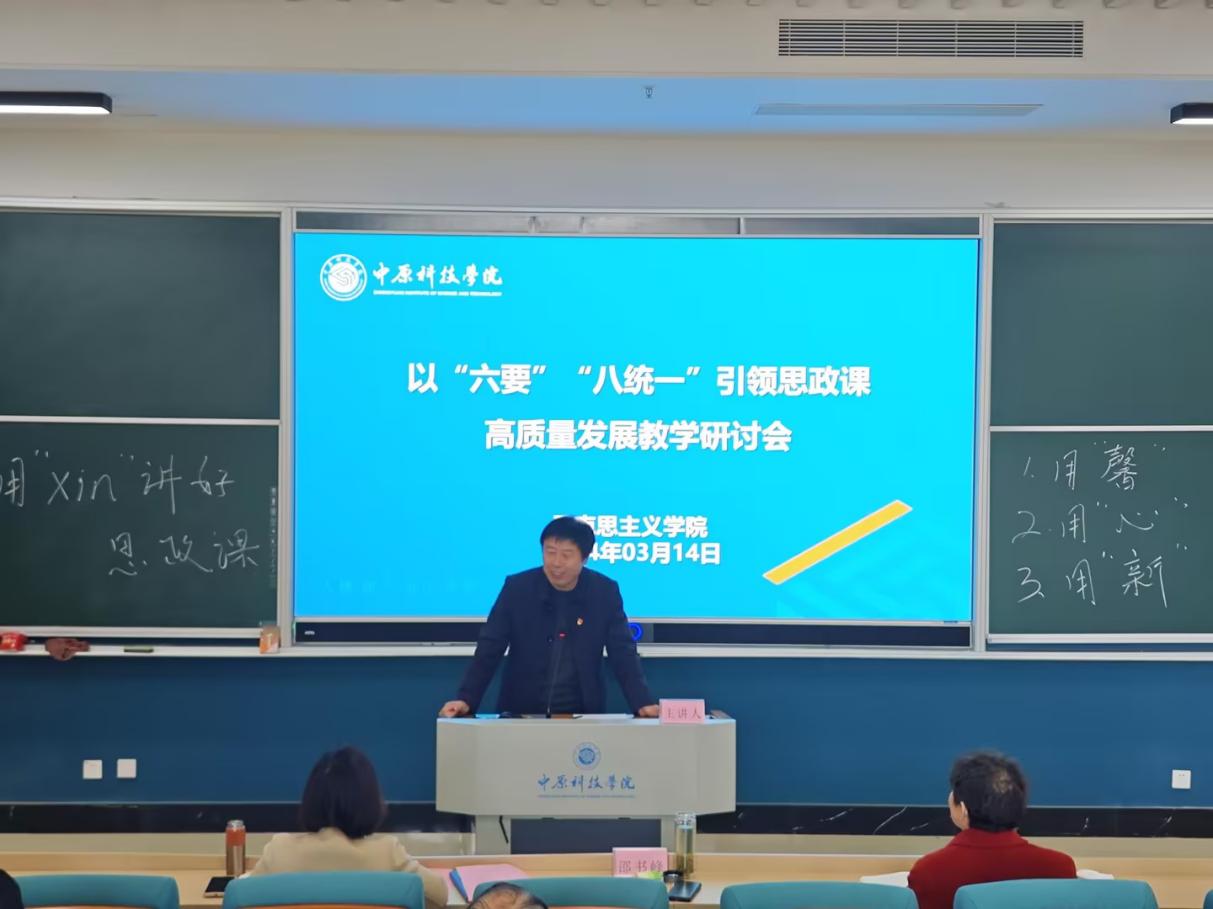 在习近平总书记“3•18”重要讲话发表五周年之际, 3月14日,中原科技学院马克思主义学院在立业楼S102举办以“六要”“八统一”引领思政课高质量发展教学研讨会,党委书记邵书峰出席,马克思主义学院全体教师参加,会议由马克思主义学院院长朱媛主持。