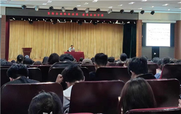 为了让广大青年学生更加深入了解全面依法治国的重要内容,客观认识依法治国对每个公民的重要意义,4月20日19:00学术报告厅座无虚席,马克思主义学院杨合理教授以《坚持全面依法治国 建设法治中国》为主题作宣讲报告。马克思主义学院全体教师、青年马克思主义研究会成员及部分学生代表参加了学习。