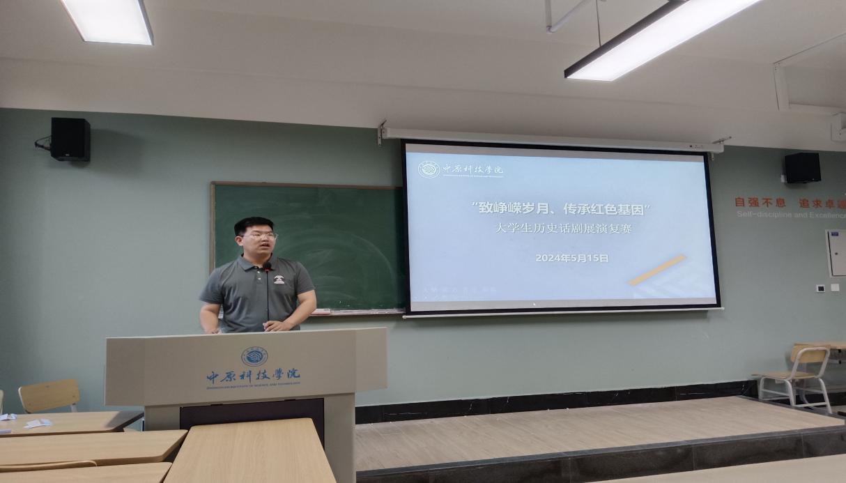2024年5月15日,马克思主义学院举办“致敬峥嵘岁月,传承红色基因”大学生历史话剧展演复赛,比赛在立业楼N304和N305两个教室举行,经过严格的筛选,共有23个小组进入复赛。中国近现代史纲要教研室主任李洋和牛强、张欢、张婷婷、彭举、高文豪老师担任复赛的评委老师。